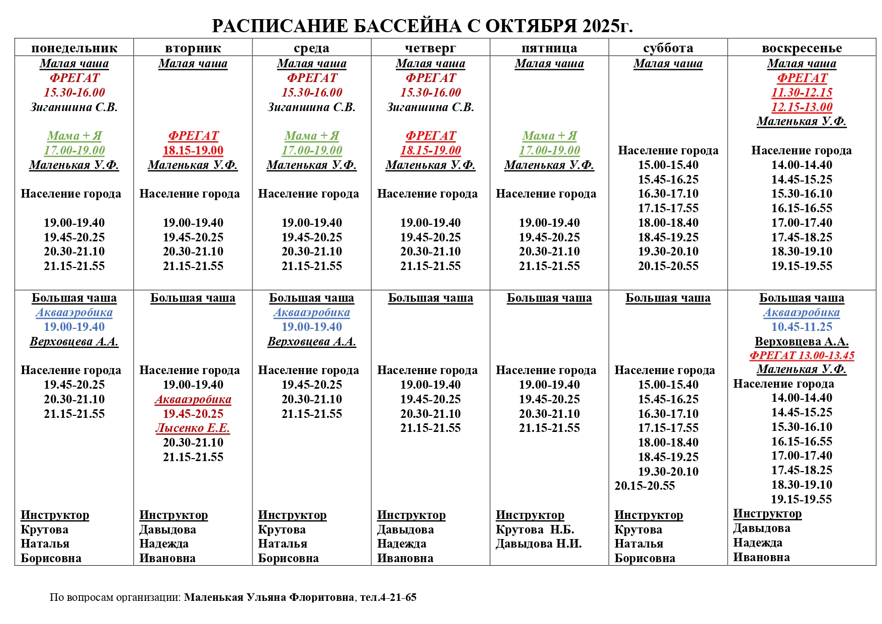 Оплата услуг в кассе бассейна только за наличный расчет.